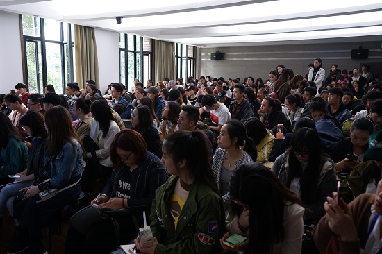 当有同学提及令所有戏文系同学都头皮发麻的读书笔记时,车导说:“读书笔记是非常有意义的一件事,请你们一定相信,随着你们慢慢长大你们的绝对阅读时间会无限性的缩短。有很多书,在大学里可能这是你第一遍看,也可能是你最后一次看了,就像《热铁皮屋顶上的猫》。再举一个例子,通常来说,越成功越没时间读书,而你如果没成功便也没心情读书。当专业和职业联系起来的时候,你看以元素训练的模式来看待综艺真人秀节目时,选手上台表演前的梦想便是人物前史,通关是一个动作,而评委们让不让选手通关是反动作,其中的展示和表演就是突转和发现。这些东西都是和我们所看所学相关的啊。”车导风趣幽默的比喻迎来了同学们雷鸣般的掌声。