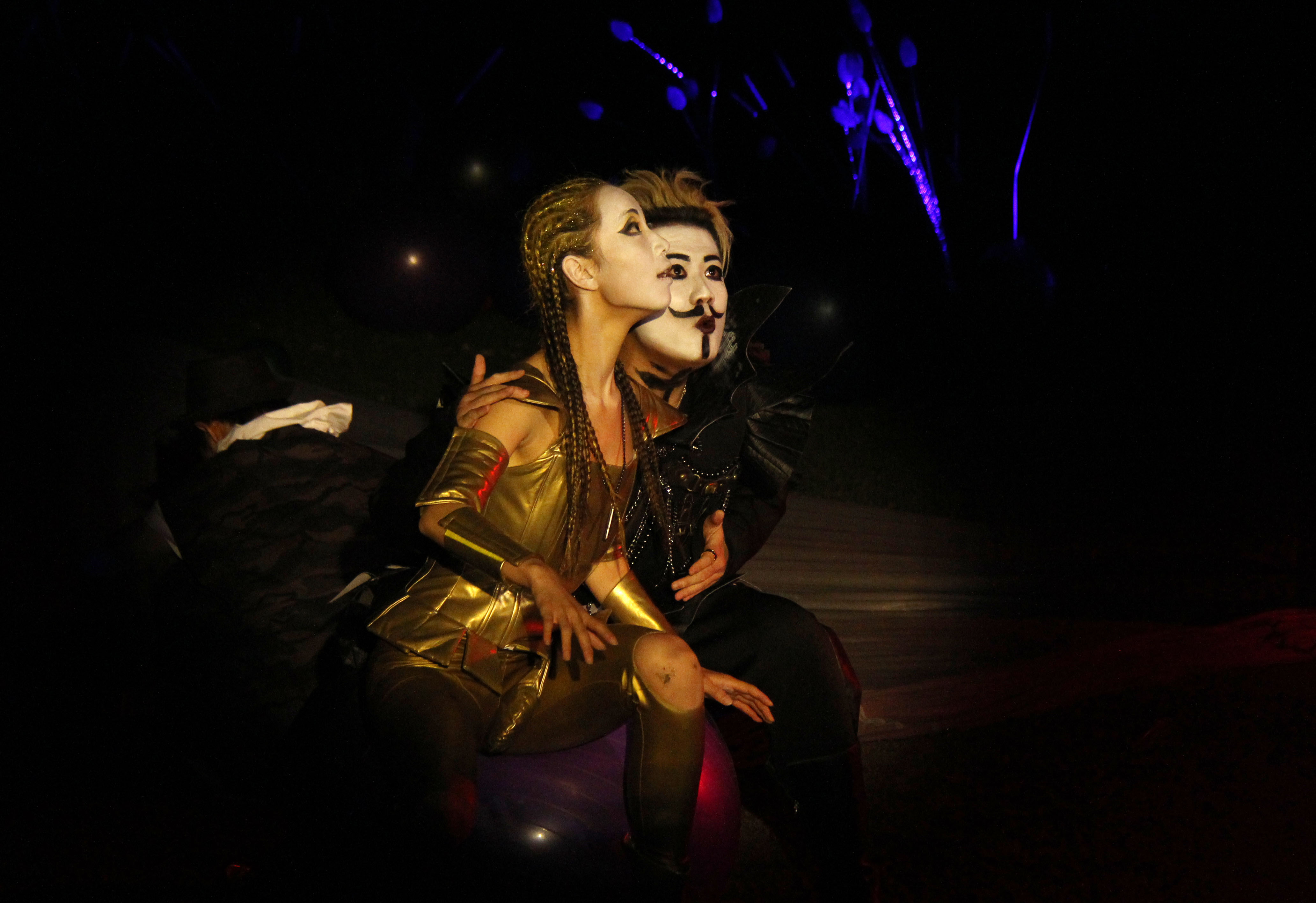 其间运用瑜伽球作为道具拼搭元素,也增强了台上演员与台下观众的互动性,以及这出剧目的偶然性与不确定性。观众和演员都无法准确估计每个球的下落点,这给表演增加了难度但也同时充满趣味性,随时随地球或许就会滚到你的面前来。