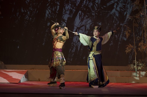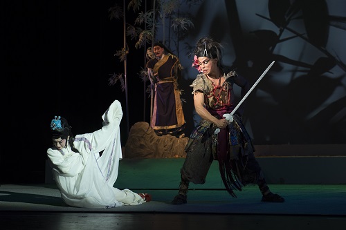 故事的陈述者,此次出演本剧的三位主人公,赵扬强、林庭瑜、戴立吾均别具一格的带给了我们隶属于他们也属于本角色原型的独特的观剧感受。你瞧那官人头戴金丝帽,长蓝襟,腰配长剑与短刀;娘子身着白襦裙,红跷鞋,头顶银蝶步步摇;还有那强盗乱发粗犷,袒胸露乳,兽皮长绳即着衣,打破了传统的服化模式,大胆的进行革新,吸收别于京剧之外舞台剧的精髓,但又不失其本来样貌,人物定位显著。