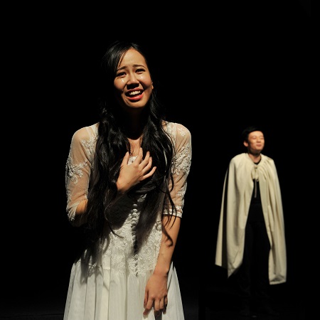 话剧《灵魂之夜》在几声钟声中拉开帷幕,舞美十分简约,只有几只灰色箱子拼成的床,来象征整个酒店的环境。在几位全身黑色紧身衣的演员之间,一袭白裙的女主角尤其显眼。在几句对于自己现况的描述中,就能了解到女主角是一个幽灵,没有人能看见她,终日游荡在酒店中。我们都能猜到她将会邂逅一个能看见她的男主角,却不知道这不只是一个人鬼情未了的故事,而是一个关于秘密、关于过去、关于信仰,相互救赎的故事。