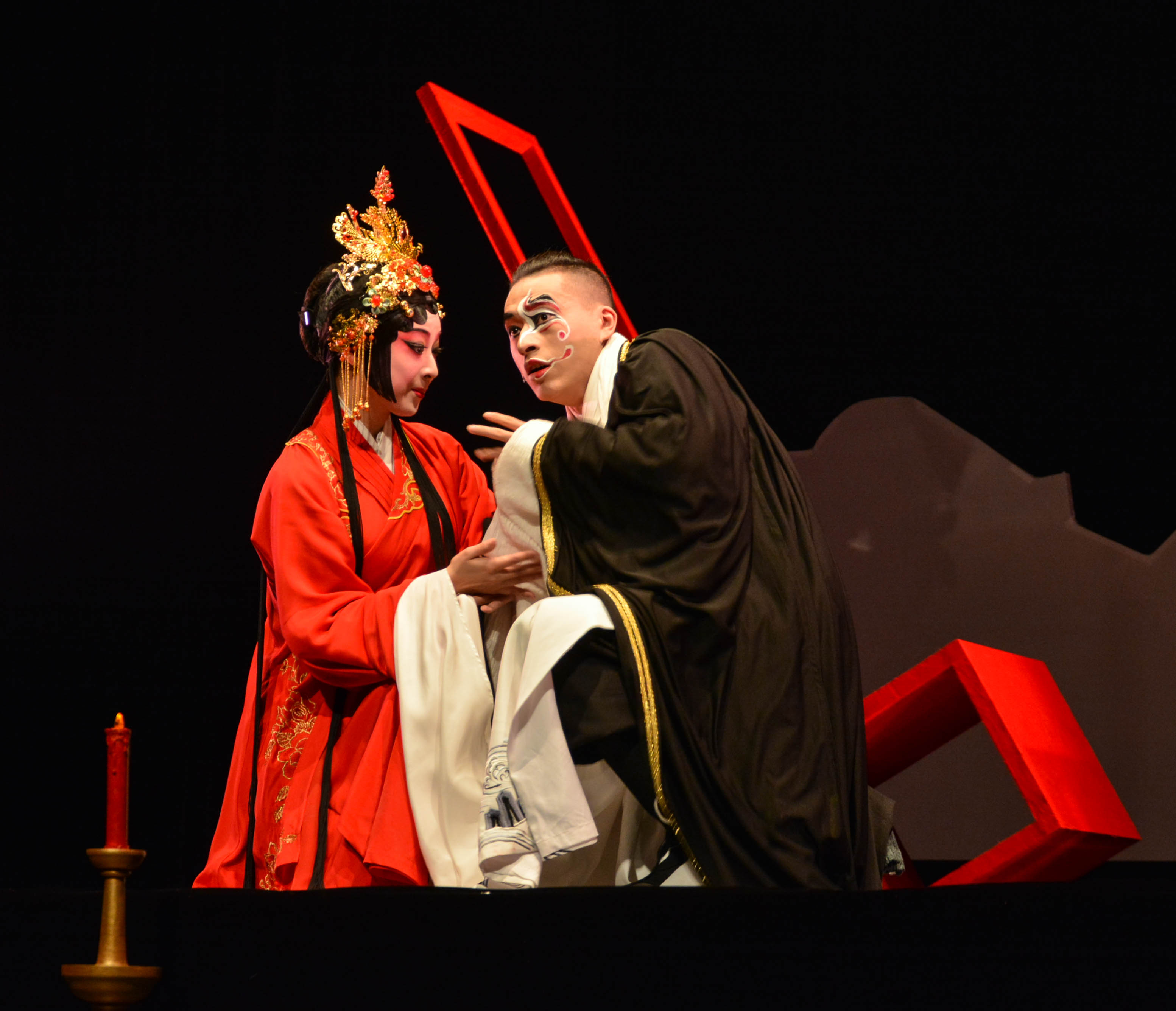 这部实验性的新昆剧《夫的人》改编自莎士比亚名剧《麦克白》。本来在莎士比亚的剧中,麦克白夫人只是剧中一位着墨不多的女性人物,而在该剧中却成为了主角,在临终的梦境中回忆一生。《夫的人》以麦克白夫人为第一人物、第一视角,对她的心理情感变化进行深度的探索和挖掘,用东方昆曲的传统方式塑造这位西方女性形象,通过昆曲的唱念做打和话剧的白话台词相结合,再加以现代流行的网络用语和上海话,让观众看到昆剧的多样的可能性,从而喜欢昆剧。现代主义的极简舞台、新的创作视角、红黑白的三大主调让观众置身于这部80分钟的新昆剧中回味无穷。