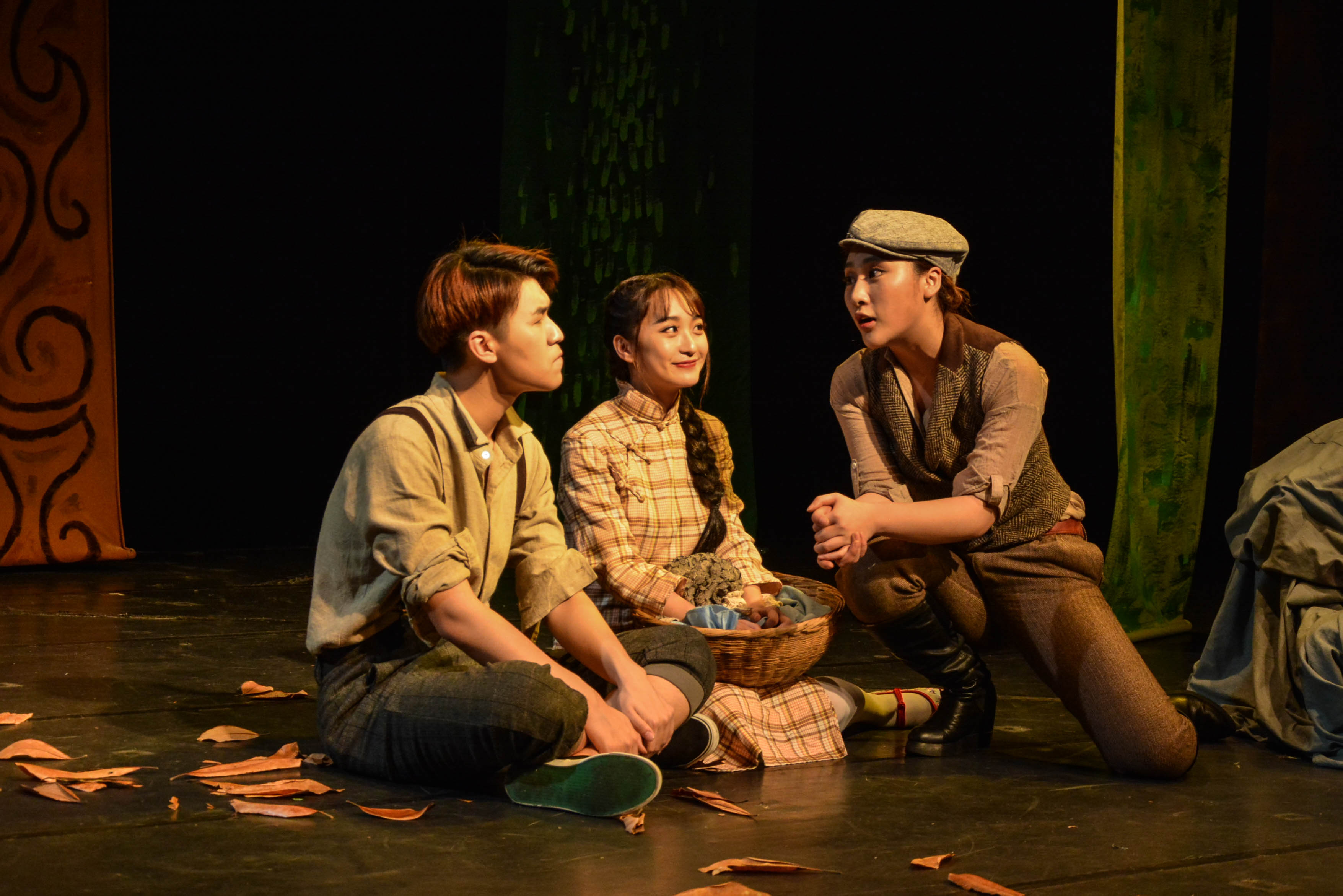 作为学生戏剧,剧组的经费不会太多,这也是导13的同学们在部戏上遇到的一个问题之一。但是他们力求花最少的钱,做最好的戏,服装简约但正好符合了整个戏的风格,接地气。而且这整部剧有一个亮点就是,整部戏的音效都由现场演员伴奏。