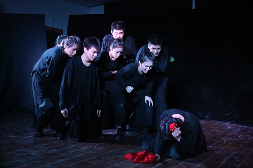 演出的教室并不大,但是座无虚席,甚至于座位前面的地板上也坐了满满一排的人。如果让我说对这部剧最直观的感受,那就是“好看”。这个“好看”,不是指舞台的奢华绚丽,相反,整个现场的布景及灯光十分简单,但是也正是因为简单,我们能够全身心地投入到演员的演出。万物复苏,船舶,水流,动植物等场景及道具,被演员们以机智生动的方式用肢体表现出来,前半段的气氛轻快柔和,演员表演夸张滑稽,台下的观众笑声不断。当剧情进行到计划生育政策的实施时,姑姑由原来新生儿的接生者变为了阻止新生儿降生的计生员,无法选择的历史之恶开始逐渐体现出来,人体不再只是道具的载体,而逐渐延伸为有血有肉的角色。在配乐和灯光的烘托之下,现场仿佛笼罩了一张无形的网,剧中的人物在这张网颤抖,挣扎,浮沉,难以脱逃。演员精湛的演技收紧了每位观众的神经,当剧情走向高潮时,现场无一丝杂乱的声响,连呼吸都真切可闻。同时,剧中佛化意象的面具及配乐也值得一提,佛的终极奥义在于慈悲,在于普度众生。这也正是作品创作的初衷,不在于批判,不在于评价,只是回忆与反省。
