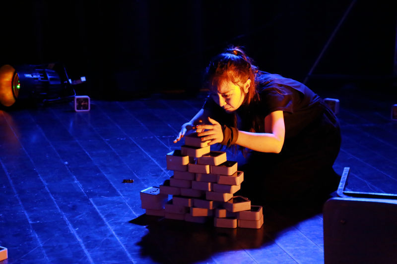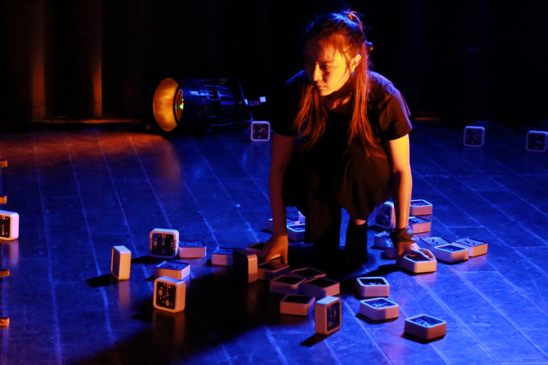 下午一点半,红楼106,一束灯光,一圈闹钟,两位黑色行装的女演员,一位灯光师,一位音效师,一位主创。肢体剧《下站》就这样上演了。