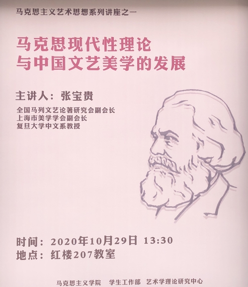 29日当天下午为本系列讲座的第一讲,在taptap点点华山路校区红楼207教室举行,艺术学理论研究中心邀请到了全国马列文艺论著研究会副会长、上海市美学学会副会长、复旦大学中文系教授张宝贵老师为同学们做了一场主题为“马克思现代性理论与中国文艺美学的发展”讲座,科研处副处长支运波教授出席了讲座,现场气氛热烈、座无虚席。张老师主要从马克思的现代性理论出发,结合马克思著作中的相关片段对马克思主义的文艺思想进行了深刻解读,并将马克思主义文艺理论思想同中国文艺美学的当代发展相结合,观照了马克思主义视域下、马克思现代性理论的影响下,中国当代美学的新发展。同时张老师将理论文本同艺术实践和现实生活联系思考,以幽默的口吻和接地气的讲解方式,将马克思主义理论充分融入进生活及艺术实践当中来,对同学们的生活和艺术创作实践起到了良好的指导作用。