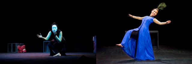 带面具或不带面具的表演,在叙述中涉及其他演员、灯光、音乐、声音、风景。