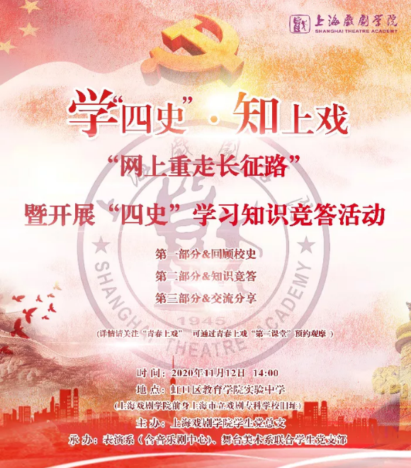 舞美系学生党支部书记李宗禹老师和张译月老师主持并开展了“网上重走长征路”暨“四史”学习知识竞答活动,并决出了团体一二三等奖和前十名同学。在本次活动中,竞答内容围绕着大主题“网上重走长征路”展开,分为“英雄”、“复兴”、“创新”、“信念”四个篇章。在竞答过程中,同学们积极参与,气氛热烈,充分感受到了英雄模范的先讲事迹和崇高精神,了解到了新中国成立以来的沧桑巨变和奋斗历程,体会到改革开放以来中国伟大创新的宝贵经验,探索到了马克思主义和社会运动跌宕起伏的发展历程。引导高校师生通过学、赛、讲、展等活动形式,充分运用线上线下有机结合的方式,切实引导广大师生深刻理解中国共产党为什么“能”、马克思主义为什么“行”、中国特色社会主义为什么“好”。在本次活动中,虹口区教育学院实验中学的全书记和楼主任全程参与,全程陪同,和党训班的师生们一同追溯taptap点点过往的光辉历史。