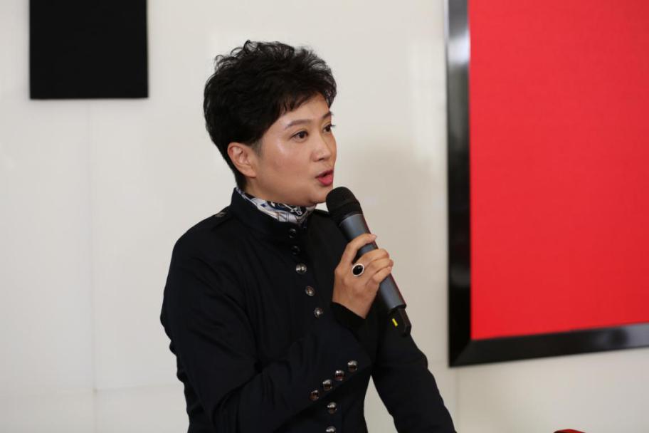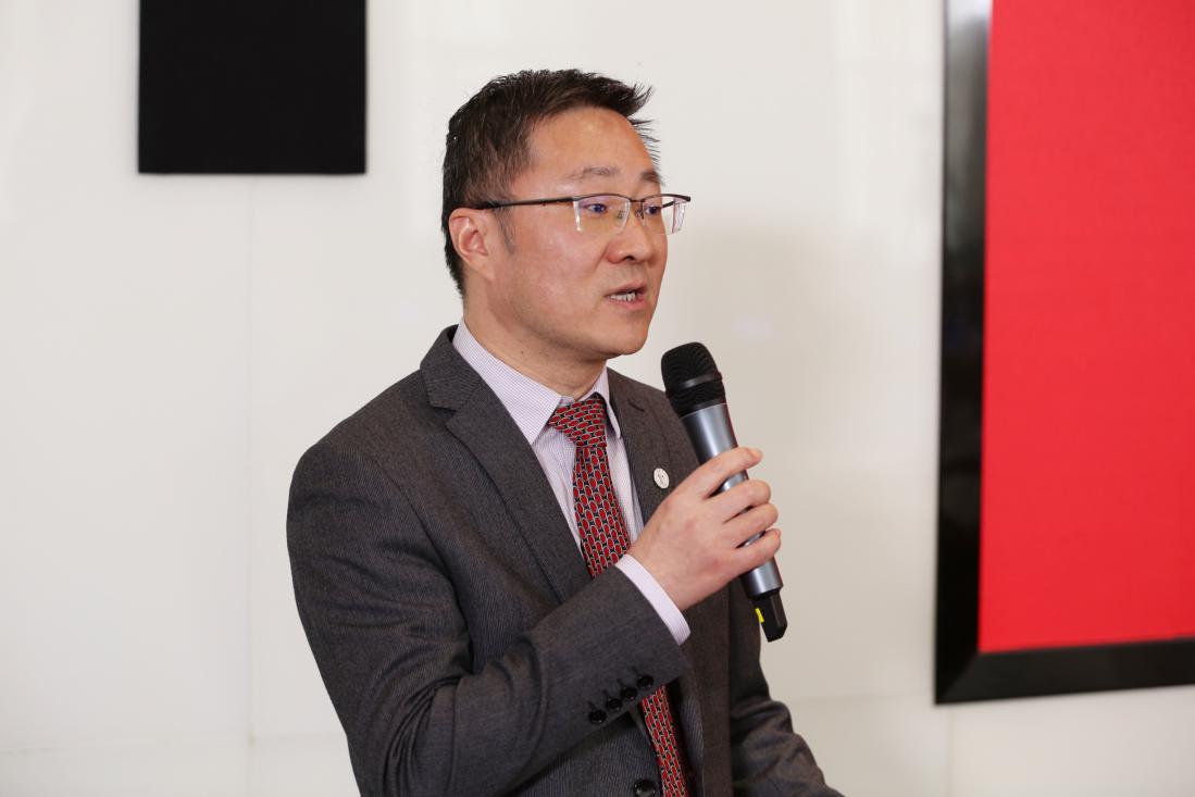 图为taptap点点体育电影学院副院长董健介绍taptap点点电影学院教育教学情况