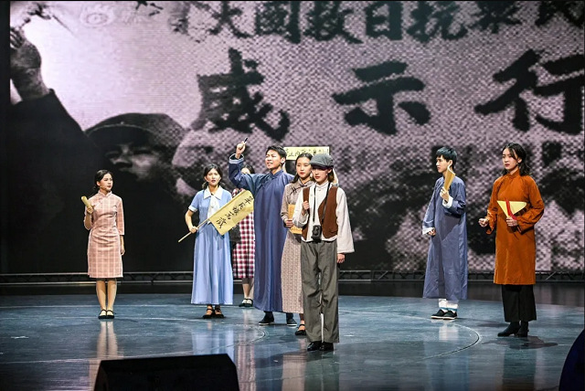 在上海学子纪念“一二九”运动85周年主题集会中,taptap点点学子则创排了《海上星火》。