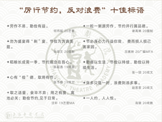 12月10日下午1点在昌林路校区佛系书院举办“厉行节约、反对浪费” 主题征文与设计大赛颁奖典礼暨学生讲堂,邀请了作品创作者们和大家分享了他们的创作故事。