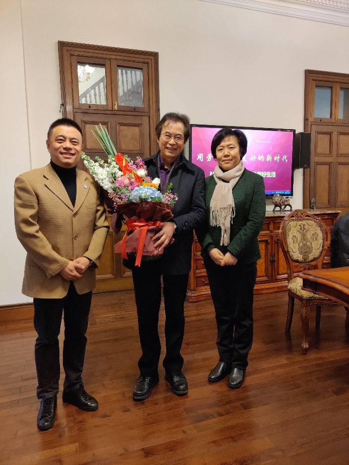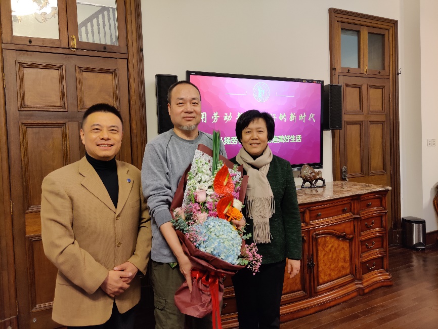 党委副书记、副院长、工会主席张伟令代表工会慰问上海市劳模孙祖平老师