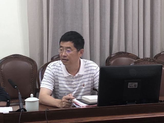 (图为副院长杨扬介绍学校科研工作相关情况)