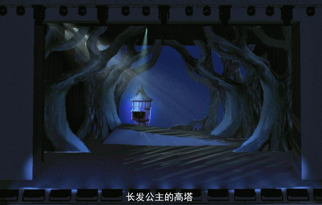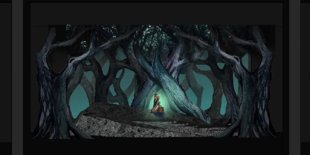森林是一个未知的世界,走进森林,走出自己熟悉的区域。一切都伴随着美好与恐惧。森林里充满希望,但同时暗藏危机,需要克服恐惧的勇气。例如刚进入森林时,大家面对未知环境有种压抑与恐惧感,灯光也要做相应的处理。灯光的整体色调搭配为冷色调加上利用灯光来压缩与区分空间上的层次关系,来营造整体的环境氛围。