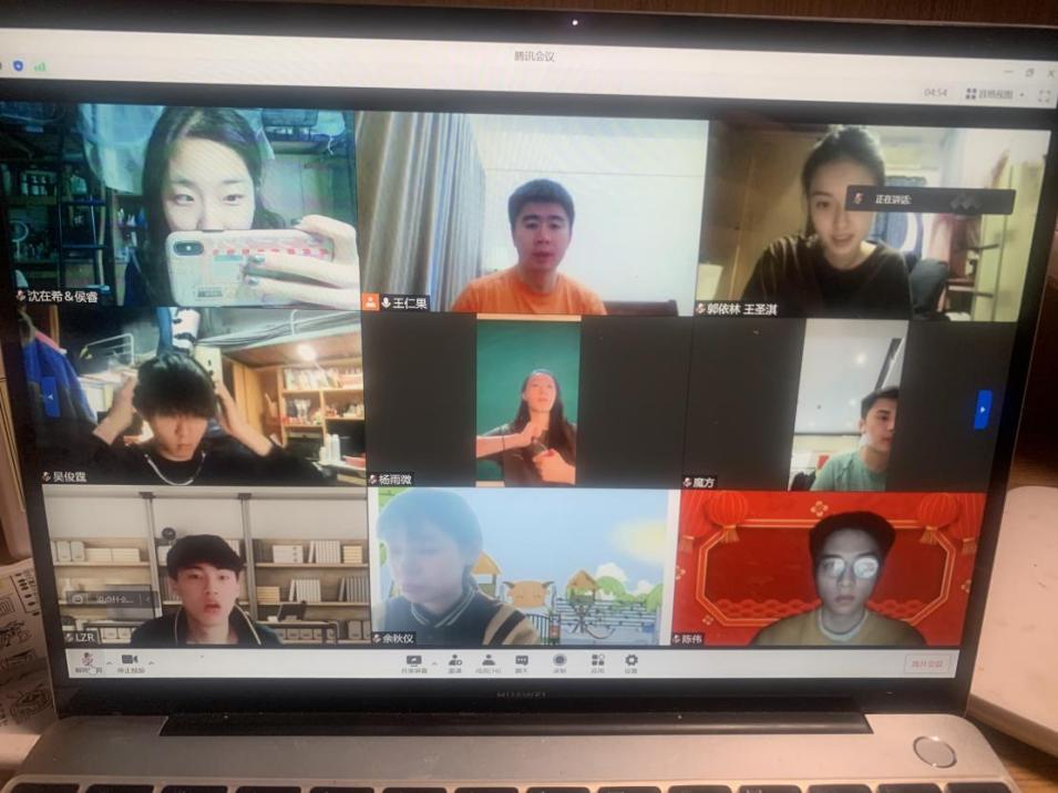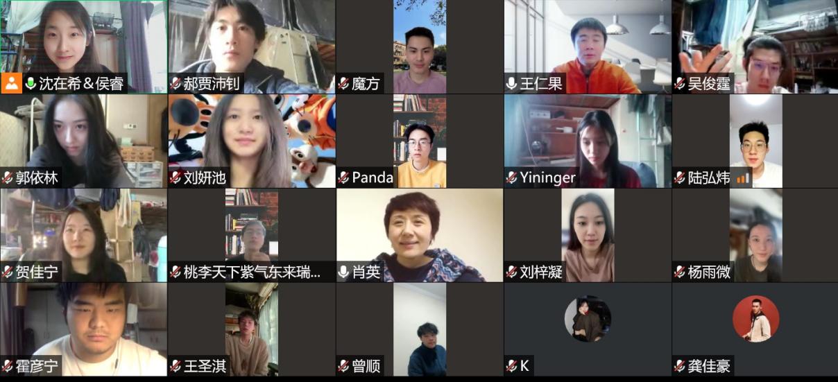 建组会后,19级的老师和同学们便开始了紧张的筹备工作。导演肖英老师、方文老师、王仁果老师与同学们共同参与其中,一起创作、打磨、探索舞台上的呈现和演绎方式。剧组每天准时在线上相聚,所有人总是满腔热情地投入到排练中。舞台监督从3月20日进组跟排,4月20日开始录像,共参与排练30余次。“云排练”,对剧组来说也是第一次尝试,线上排练场里也遇到了各种各样的新问题,比如因为各自网速关系,演员在对词的时候偶尔会有“时差”,或是同学们突然被叫去做核酸……这些都被大家一一克服。