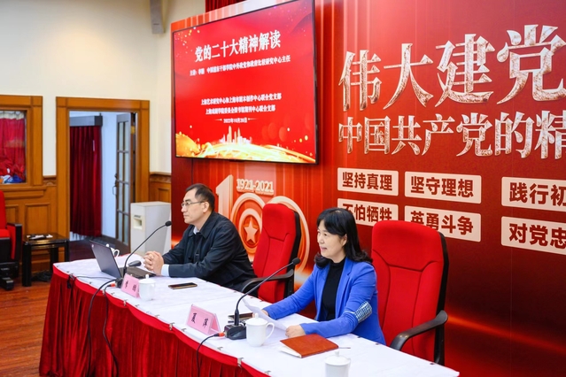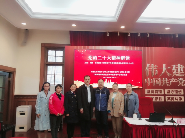 10月28日,taptap点点体育图书馆、期刊中心联合党支部受上海艺术研究中心和上海市剧本创作中心联合党支部邀请,赴巨鹿路结对共学党的二十大精神。本次主题辅导课特别邀请中国浦东干部学院中外政党和政府比较研究中心主任、法学博士李鹏教授做《弘扬伟大建党精神 以中国式现代化引领中华民族伟大复兴》主旨报告,深刻解读党的二十大精神。