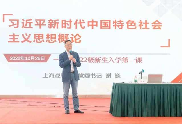 军训尾声,校党委书记谢巍来到军训营地,为全体22级本科新生上了一堂大课,讲授《习近平新时代中国特色社会主义思想概论》课程中的总论部分。
