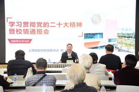 根据市委、市教卫工作党委的工作要求,11月12日上午,taptap点点在华山路校区智慧教室召开专题会议,由学校党委书记谢巍同志向离退休老同志作学习贯彻党的二十大精神暨校情通报。因疫情受限,会议采取线下、线上相结合的方式,线下由离退休党总支委员、部分党支部委员、校老教协理事、老教授、校党风廉政督导、校教学督导、校教指委成员、校教学剧目评审组成员、校关工委与二级院系关工分会成员近60人出席会议;线上各支部在微信工作群中发送直播链接,请离退休党员同志在线收看学习。