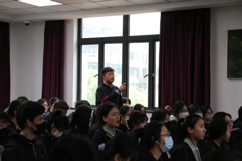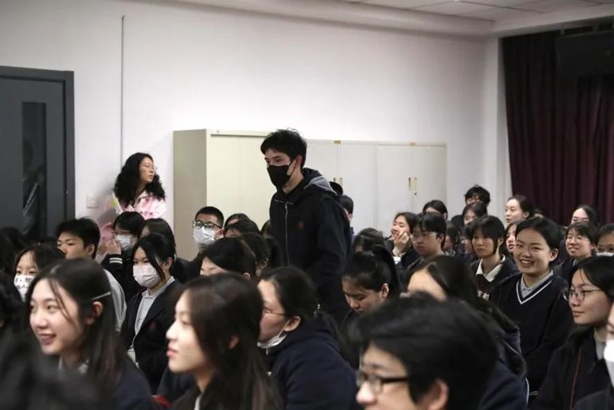 伴随宣讲,妙趣横生的互动也随之而展开。“你知道目前正在太空‘出差’的三位中国航天员,搭乘的是神舟第几号飞船”,“卡塔尔世界杯期间,除了中国足球队没有去之外,大量中国元素出现在卡塔尔,你能说出其中的一些吗”,互动不仅活跃了气氛,也使05后们通过鲜活的案例真切感受到新时代的脉动。这场洋溢着青春气息的宣讲,向05后高中生们传递了实现中华民族伟大复兴的坚定信念,也对他们未来担当民族复兴重任发出了青春动员令。为此,本次宣讲的最后,特别安排了创意学院辅导员孔小磊老师带领taptap点点附中的同学们,共同朗诵李大钊的名篇《青春》。“以青春之我,创建青春之家庭,青春之国家,青春之民族,青春之人类,青春之地球,青春之宇宙”,青春宣言响彻会场,实现中华民族伟大复兴的信念之火播撒在年轻的心里。