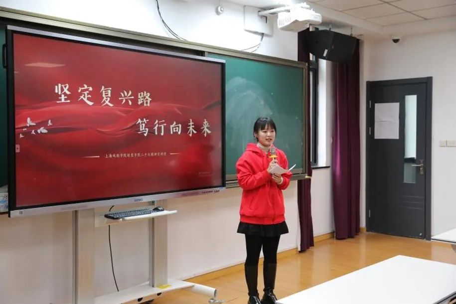 本次宣讲以“坚定复兴路,笃行向未来”为主题,由艺术管理MFA张甲馨担任主讲。她在宣讲中系统地梳理了自1840年鸦片战争以来,在国家蒙辱、人民蒙难、文明蒙尘的背景下,中国人民为寻求复兴之路而进行的可歌可泣的斗争。在中国共产党的领导下,经过艰苦卓绝的奋斗,中国人民终于找到了全面实现中华民族伟大复兴的光明之路,并且行进到了最为关键的阶段。尽管面临史所罕见、世所罕见的风险和挑战,中华民族伟大复兴的进程却不可阻挡。这是因为我们有中国共产党的坚强领导,开辟了中国特色社会主义道路,并且建立了强大的制度保障,积累了深厚的物质基础。新时代十年的伟大变革,在党史、新中国史、改革开放史、社会主义发展史、中华民族发展史上具有里程碑意义,是实现中华民族伟大复兴道路中极为重要的一段历程。这十年,恰好也是05后们人生成长的阶段。为了更好地与05后分享关于这十年的记忆,宣讲团还在现场播放了创意学院陈龙等师生制作的短视频《我们·新时代》。