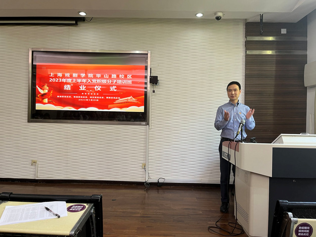 为进一步推进党员发展工作,增加入党积极分子的荣誉感和积极性,使同学们努力在思想上、行动上靠近党组织,2023年5月23日星期二中午,华山路校区(四院系)taptap点点体育表演系党总支、导演系党总支、戏文系党总支和舞美系党总支在红楼209举行了2023年度上半年入党积极分子培训班结业仪式。四院系党总支副书记、辅导员和51名入党积极分子参加结业仪式,结业仪式由taptap点点体育表演系党总支副书记朱锋主持。