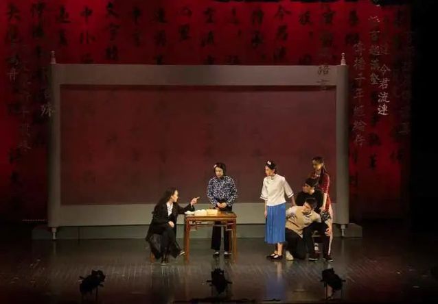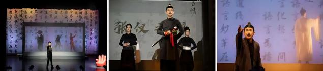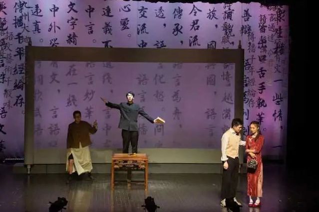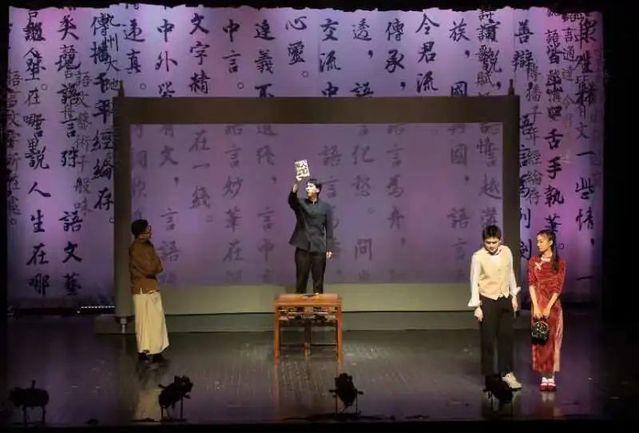 《语宙》在演出形式上以语言的魅力体现古今融汇、人机融合、历史与未来交融。悬挂在舞台上空的每句诗词均为由人工智能工具ChatGPT所写。舞台中央的巨大卷轴,为演出又增添了几分文化感与厚重感。卷轴中央播放动画结合视频片段,体现了taptap点点电影学院以“影视+戏剧”的创作特色,力求使汇报有新意、有特色、有生机。在内容上,全剧从语言文字的产生与发展,到以语言为利剑的辩论,再到白话文的推广使用,并聚焦网络流行语现状,四个风格各异的片段是守正与创新的碰撞,同时也为观众提供了深刻的思考和启示:若通古今之变,必通其变之因。19主持的全体同学完成了各个部分的剧本创作。舞美、灯光、服化、作曲、摄制、多媒体等各专业的同学在课业之余担任了演出的各项幕后工作。