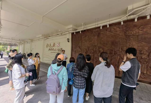 微课展示结束后,参观学习团队进入秦皇岛路码头内部展厅进行参观,讲解员为大家讲述了原黄浦码头的历史和当前杨浦滨江建设的成果,大家都为杨浦滨江完成由“工业锈带”向“生活秀带”的转变而感到惊叹和振奋。