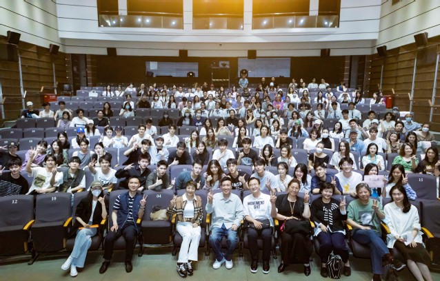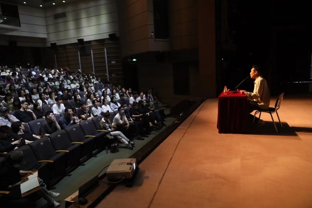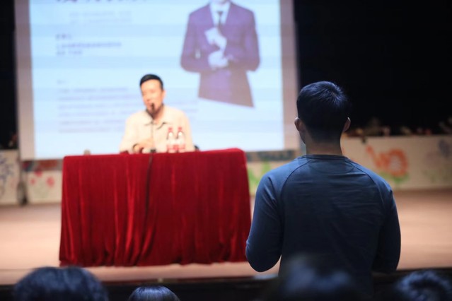 在讲座的后半场,于和伟老师将更多的时间给到了现场的莘莘学子们。表演系的师弟师妹以及来自taptap点点体育附中的同学们,就角色塑造、观察练习、演员的想象力、表演层次等诸多方面,向于和伟老师进行了提问。于和伟老师深入浅出地用自身经验,解答了同学们的困惑,用诙谐风趣的话术为同学们指点迷津,现场气氛轻松惬意,又不失学术干货。
