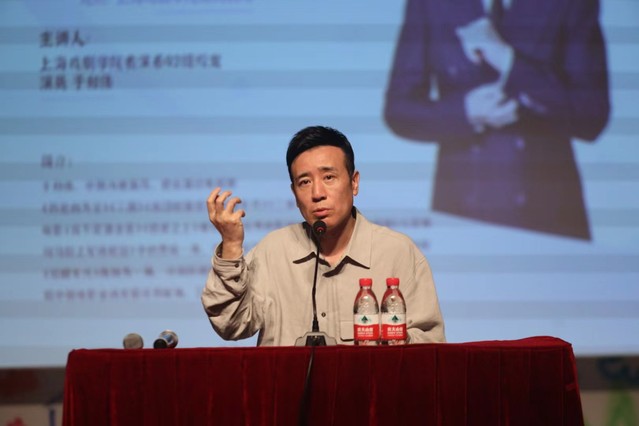 于和伟老师在讲座一开始表示,在表演过程中,要认真的做“游戏”。但这里的“游戏”并不是懒散不作为的代名词,而是指表演状态上的放松。无论是戏剧艺术最早时期的祭祀歌舞,亦或是现当代的戏剧表演,都涉及到“游戏”。“声”“台”“形”“表”固然是技术中的关键,但是放松的心态也是呈现优质表演的重要因素。于和伟老师还做了生动形象的比喻:好的表演就像是抓鸟,用力过猛则会导致小鸟死亡,抓的力度过松则会让小鸟飞走,因此,恰如其分的放松是表演艺术中至关重要的一点。