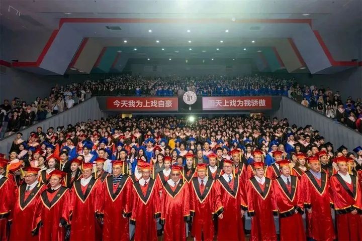 在宣誓环节,全体毕业生起立,举起右手,面向校旗庄严宣誓:“求实求精,至善至美;不忘初心,服务人民。弘扬中国精神,凝聚中国力量,为新时代社会主义文化繁荣兴盛而努力奋斗!”每一句誓词都铿锵有力、激情昂扬,彰显了毕业生的情怀与抱负。