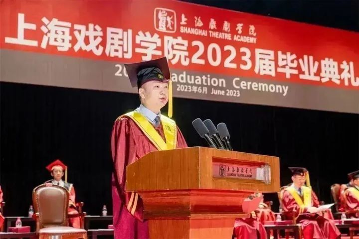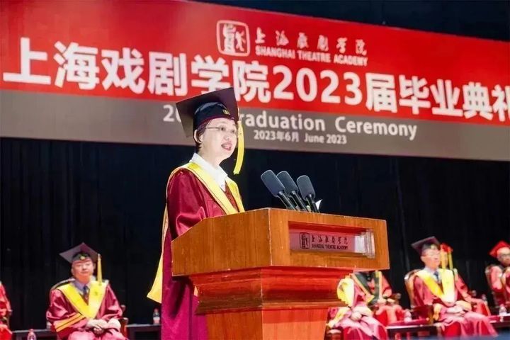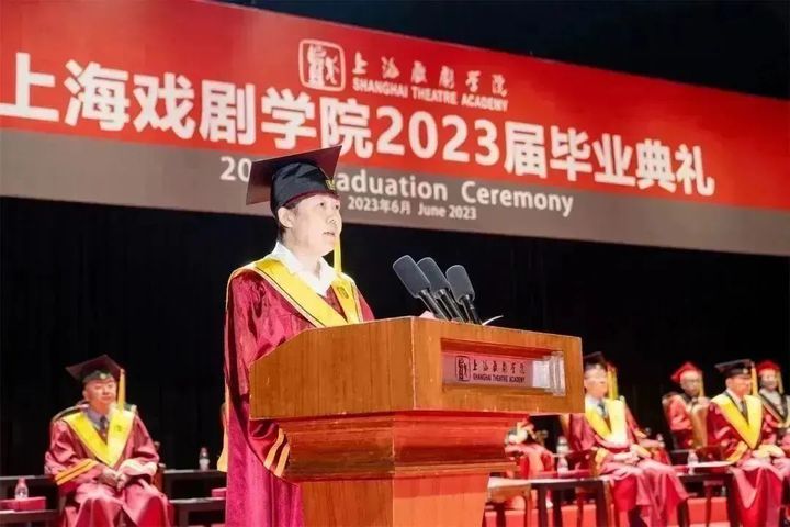 戏曲学院院长李佩红作为教师代表,为毕业生们带来“最后一堂课”。她勉励大家在今后的成长道路上,要肩负起创新发展中华优秀文化的使命,以红色信念和多彩憧憬,仰望星空、脚踏实地,怀揣梦想、奔向远方。