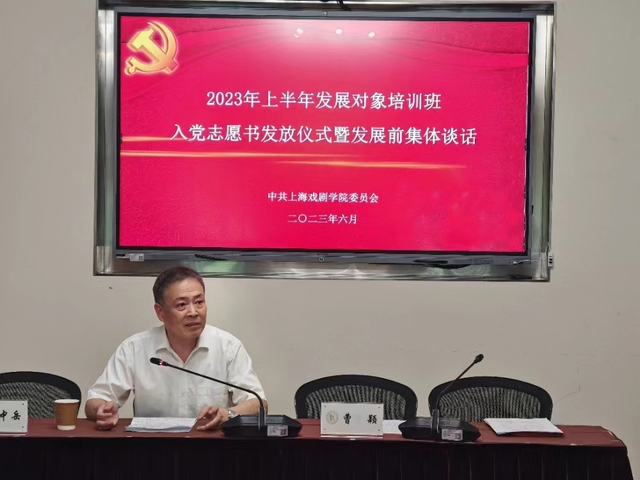 6月25日下午13:30,在华山路校区佛西楼二楼会议室举行了2023年上半年发展对象入党志愿书发放仪式暨发展前集体谈话。出席此次活动的有党委副书记胡敏,党委副书记、副院长张伟令,关工委副主任兼秘书长、特邀党建组织员、原党委组织部部长邱中岳,各院系党总支副书记、学生支部书记也到场参与,活动由党委组织员曹颖主持。