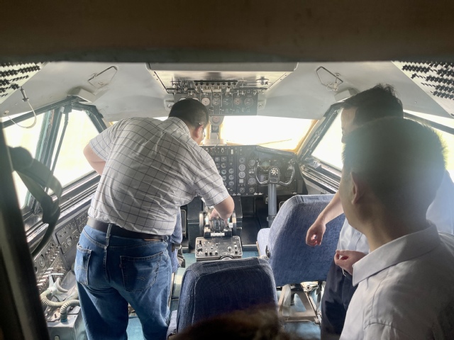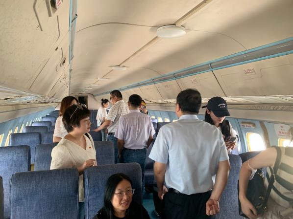 师生一行首先来到停放着“运十”原型机的停机坪参观学习,听取了“运十”客机研发历程和商飞“永不放弃”精神内涵的讲解。“运十”客机是中国民用飞机的开山之作,是20世纪70年代由中国航空工业上海飞机制造厂研制的四发大型喷气式客机,这是中国自行设计、制造的第一架完全拥有自主知识产权的大型喷气客机,见证了中国大飞机从无到有的创新发展之路。