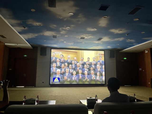 师生参观展厅并观摩C919大型客机首飞纪录片