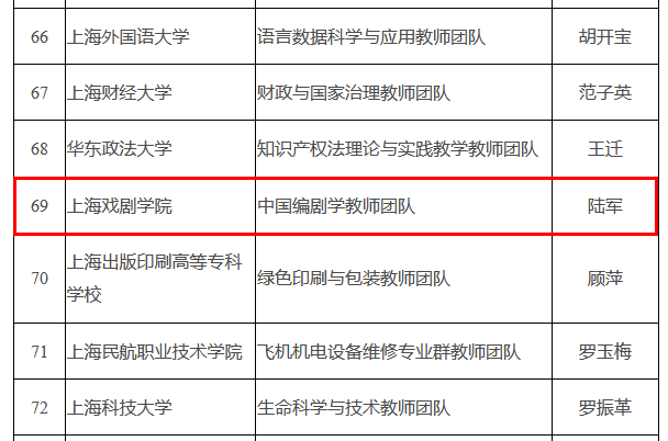 “全国高校黄大年式教师团队”是教育部为贯彻落实习近平总书记对黄大年同志先进事迹的重要指示精神,启动的国家级教师团队建设工程。陆军教授领衔的团队入选,标志着我系教师团队建设达到了较高水平,特别在中国编剧学学科建设成果方面,再次取得了国家层面的高度肯定。