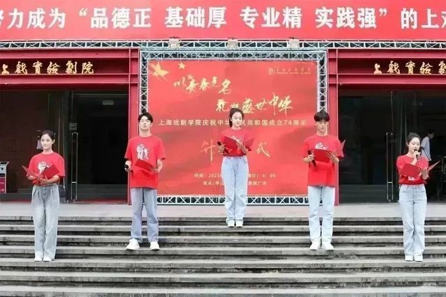 在本次升旗仪式中,师生们还表演了歌曲《追寻》《我和我的祖国》,诗朗诵《复兴颂》,小提琴演奏《歌唱祖国》等节目,为共和国74华诞送上深情的祝福。