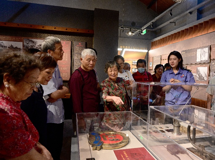 随后,老党员们又来到上海机辆段段史陈列馆参观。在龙头房样式的段史陈列室里,展示了上海机辆段从1905年成立至今的发展历程,展出了蒸汽机车、内燃机车及电力机车等各阶段的图片和实物。一件件列车上曾经使用过的水壶、照明灯等老物件激起了老党员们满满的怀旧感,一代代机车的更新换代、铁路时速的不断提升,让老党员充分感受到“中国速度”并为之自豪,一位位铁路人的故事汇聚成机辆段百年奋斗的光辉历程,使老党员们备受感动。参观完段史陈列室,老党员们又移步到机车库观摩了“周恩来号”机车头。
