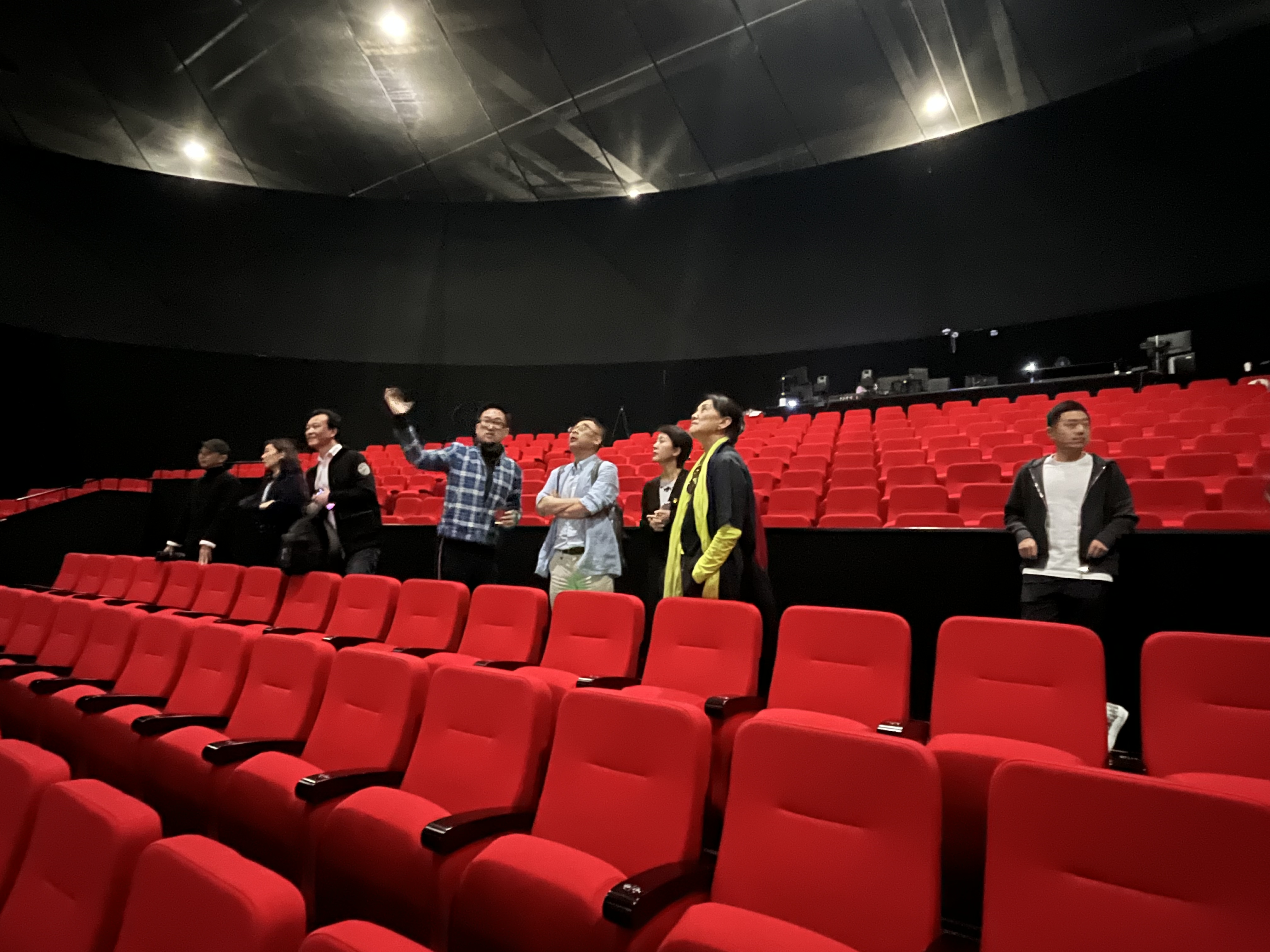 橙天嘉禾娱乐(集团)有限公司CEO毛义民、政企事业部副总裁王焓与taptap点点2003级播音与主持专业校友殷实带领两院系领导与老师参观了国内首个360度全景感官剧场,介绍了剧场的设计、建设、创作、管理、运营等情况,详细讲解剧场内外的科技赋能属性,他表示苏州橙天嘉禾剧场项目运用前沿LED显示科技焕发新活力,打破传统舞台边界,为观众提供了全新的视觉盛宴,为艺术提供了更广阔的表现空间。