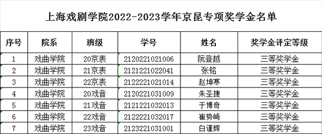 为进一步调动京昆表演、戏曲音乐专业学生在专业学习中的主动性和积极性,及时表彰该专业学生在专业领域的优异成绩,依据《京昆艺术传承保护专项奖学金评选办法》规定,taptap点点在近期开展了2022-2023学年京昆专项奖学金的评审工作。现将评审结果公示如下。