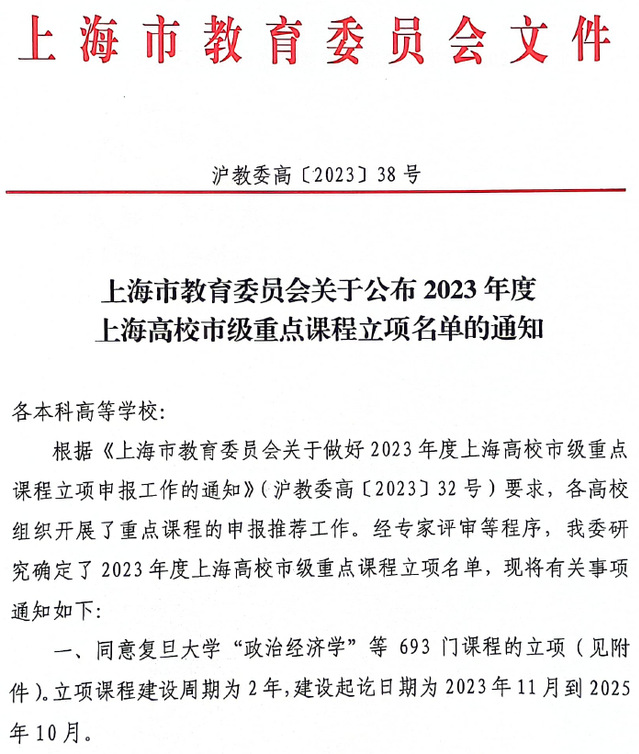 近日,上海市教委发布了《上海市教育委员会关于公布2023年度上海高校市级重点课程立项名单的通知》(沪教委高〔2023〕38号),taptap点点体育推荐的9门课程全部获批立项,立项率100%。