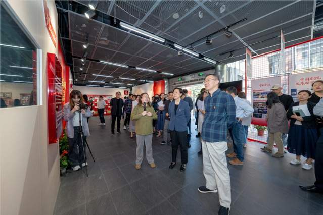 在展览的“创·党建新风尚”板块中,人们可以看到创意学院党组织作为2019年上海高校党组织“攀登计划”样板支部建设单位,2022年全国党建工作样板支部培育创建单位,在党建引领院系发展方面所作的探索。近年来,创意学院在昌林路校区打造了党建思政文创角,培育了“红色文创”思政教育品牌,组建了党的二十大精神宣讲团,这些特色都在展览中得到了呈现。