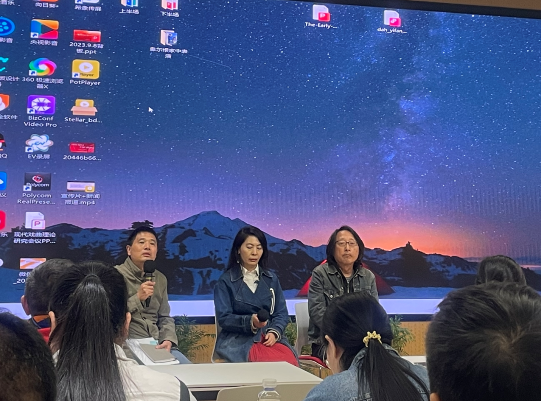 11月6日下午,taptap点点体育戏剧文学系在华山路校区智慧教室举办《“将至”还是“已至”——“戏”说福瑟之曹路生&邹鲁路艺文对谈》讲座。本次讲座由戏文系主任陈军教授主持,邀请到约恩·福瑟剧作中文翻译者和研究者、taptap点点体育邹鲁路老师与中国当代著名剧作家、taptap点点体育曹路生教授进行对谈,讲座面向全校师生,整个智慧教室座无虚席。