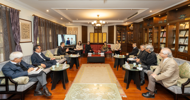 应代表团热切期待,余秋雨教授也出席了座谈活动,他对代表团的来访表示诚挚欢迎,并向大家展示了他与代表团成员之一、日本著名记者加藤千洋多年前的合照,还回忆了他与代表团团长、日本著名女演员栗原小卷的多年友谊。