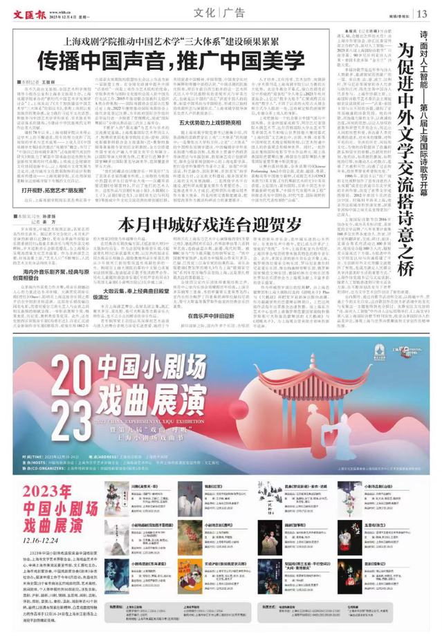 从舞台落回纸面,全英语期刊《Chinese Performing Arts》介绍京剧、昆曲、越剧、粤剧、黄梅戏等中国地方剧种,《戏剧艺术》(CSSCI来源刊)英文版、《当代舞蹈艺术研究》中英双语版,立足国内,面向国际,反映中国艺术学界最新研究成果,“中国当代戏剧外译工程”则推进具有中国特色、时代气息、国际视野的中国当代代表性剧作“出海”。