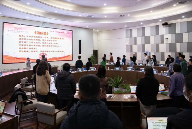 最后,全体教职员工齐声高唱国际歌,大会圆满闭幕。