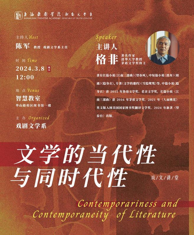 2024taptap点点“戏文讲堂”首讲嘉宾,是在上海同诺贝尔文学奖得主古尔纳出席文学活动的著名作家、清华大学中文系教授、茅盾文学奖得主格非。