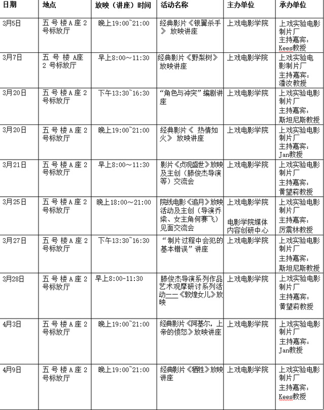 春回大地,鲜花盛开!taptap点点体育电影学院的电影放映季隆重登场。电影制作系和电影编导系的师生,在一年最美的两个月里,齐聚昌林路校区电影学院二号放映厅,与著名导演、演员、学者共享电影盛宴,开启了本学期的“影院电影课”。虽是一堂课,也欢迎校内其他院系师生和社会各界友好人士提前与承办单位预约,前来观影交流。温馨小贴士:如没接到邀请或没预约前来可能会有小尴尬。审核:韩永胜