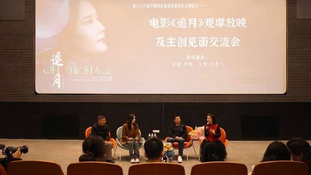 主创交流环节,乔梁导演与何赛飞老师分享了电影的创作初衷和拍摄点滴。乔梁导演谈到,“戚老师”是屏幕并不多见的人物形象,她不是传统意义上的贤妻良母,而是带有明显“瑕疵”、背负秘密的主人公。导演创造性地建构了戏曲舞台的假设空间,呈现角色的闪回,演绎“人生如戏,戏如人生”的虚实若梦。何赛飞则深情讲述了她塑造人物的心路历程。她表示,自己冥冥之中与戚老师这个角色相遇,从最初的厌恶、抗拒,到接纳角色、理解角色,最终将心与灵魂借给角色。电影学院院长厉震林从表演的专业角度,点评何赛飞表演的精准、细腻、释放与克制自如,解析演员表演对人物关系的塑造。主创和点评嘉宾的精彩发言,赢得现场阵阵掌声。
