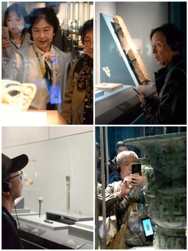 进入馆内,老同志们立刻被一件件精美藏品所吸引,熠熠生辉的金面具、栩栩如生的青铜鸡、有“健身教练”美誉的竖批发青铜人像等等,每一件藏品都让人赞叹不已,大家纷纷拿出手机拍照,记录下精美文物的每个细节。