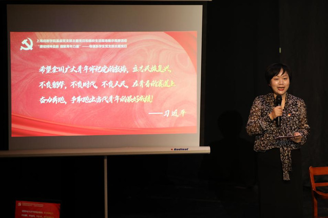 青年兴则国家兴,青年强则国家强。在本次活动终章“青年兴·青春启航”中,导演系党总支书记尹悦蓉对本次主题党日活动作总结发言,尹书记表示本次活动从策划到执行,离不开台前幕后每一位成员的付出,而这也是延安路导演青年先锋队的精神所在,未来,希望各位成员能一直秉承并发扬先锋队精神,为中华民族的伟大复兴贡献自己的力量。