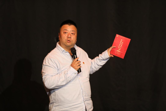 接着,导演系党总支副书记石俊对同学们的展演进行了点评,他首先肯定了同学们,尤其是毕业班的党员同学在这次党日活动中认真、投入的态度,特别表扬了临时加入导演系学生党支部的新疆少数民族特培生木拉丁参与党员活动的积极与热情,同时还介绍了导演系的革命传统和老书记郭东篱的动人事迹。
